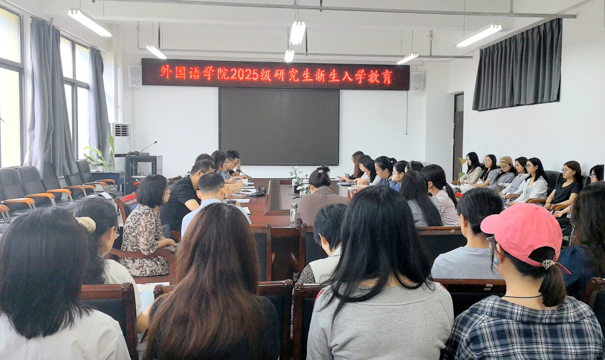 2025年9月8日下午,tyc41183太阳成集团在三号组团楼A402会议室召开tyc41183太阳成集团2025级研究生新生入学教育专题会议。学院领导班子成员、2025级研究生新生导师、研究生秘书、2025级翻译专业、国际中文教育专业、新闻与传播专业全体研究生全体新生参会,会议由副院长柴高洁主持。