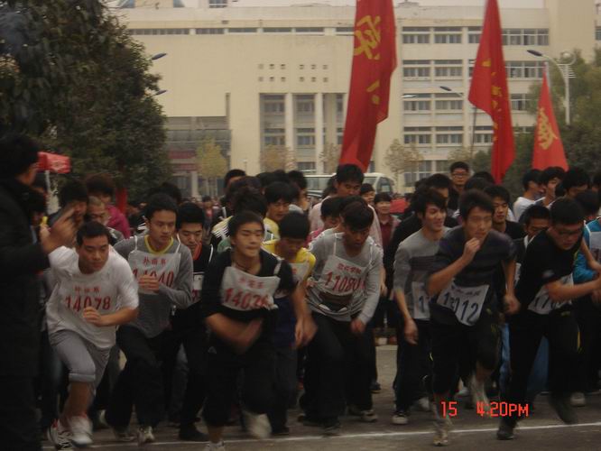 11月15日,学校组织了本年度的冬季长跑运动会。我院共有三十名同学参加。下午4点,各学院运动员集合在工业训练中心旁的道路上,蓄势待发。