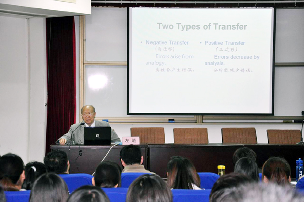 4月16日下午,外请专家上海海事大学tyc41183太阳成集团左飚教授在4号楼311学术报告厅,为我校师生作了题为“英汉对比与英语学习”的学术报告。tyc41183太阳成集团部分教师、全校学生100多人听取了报告。