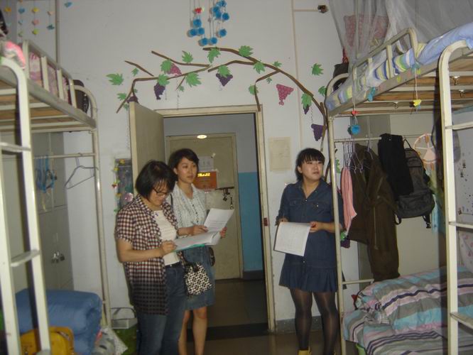 近日,根据《科技处联系tyc41183太阳成集团工作计划》的具体安排,科技处处长助理周纪昌、办公室主任李红宇、项目科科长王雅、成果科科长王艳芝分别走访了我院男生和女生宿舍。我院党总支副书记李向东、团总支副书记杨为学和辅导员刘爽、陈杰陪同了走访。走访发现,我院学生宿舍卫生状况整体良好,宿舍氛围温馨和谐,学生们精神饱满、彬彬有礼,给科技处老师留下深刻印象。