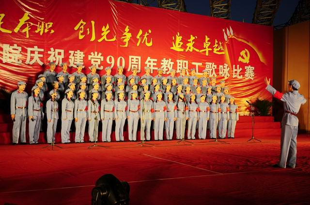 为了庆祝建党90周年,校工会组织了大合唱比赛。除了校歌外,我院结合学院特点,选择了红色经典芭蕾舞剧《红色娘子军》主题曲《红色娘子军连歌》作为自选曲目。经过激烈的角逐,我院在21个代表队中以总分第六的成绩进入决赛。