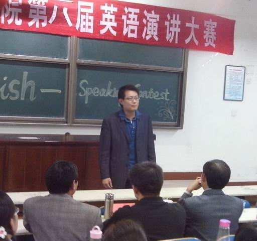 9月28日晚六点,太阳成集团tyc41183第八届英语演讲比赛决赛在我校3-205教室隆重举行。此次比赛由太阳成集团tyc41183教务处、学生处、团委、tyc41183太阳成集团主办,tyc41183太阳成集团团总支、学生会承办。校团委副书记王雪芳、外国语学副院院长杨道云、副书记李向东、英语系主任杨为明、大英二部主任董晓航、副主任李向民等参加了本次决赛。