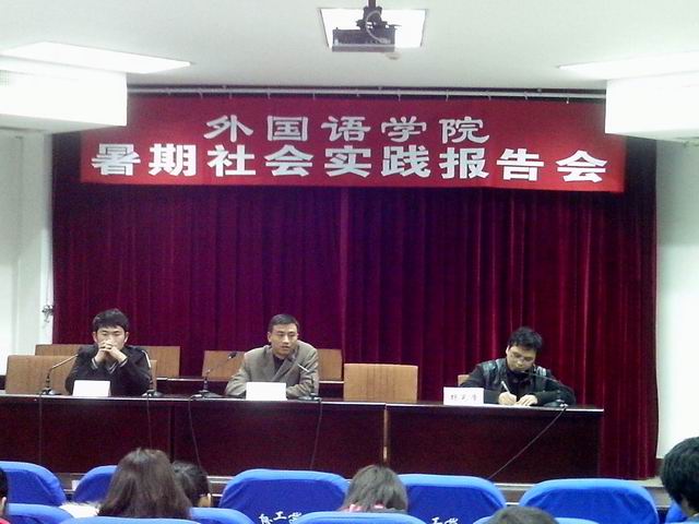 10月28日晚6:30在4-311学术报告厅,我院隆重举行了暑期社会实践报告会。院副书记李向东、团总支副书记杨为学、辅导员陈杰出席了会议,10级全体新生参加并听取了报告。