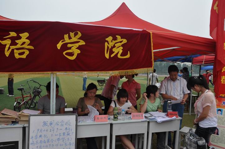 我院本届共招录新生180名,其中有将近30名来自外省的新同学。学生会和09级各班同学们组成了迎新小分队,负责迎新的各项工作,同学们热情的接待了前来报到的同学和家长们,亲自带领新同学办理入学的各项手续。我院还为新同学们发放了院报《ENGLISH EDEN》迎新专刊,内容包括《致新生的一封信》、《入学后的工作安排》、《安全提示》、《优秀学子介绍》等内容。