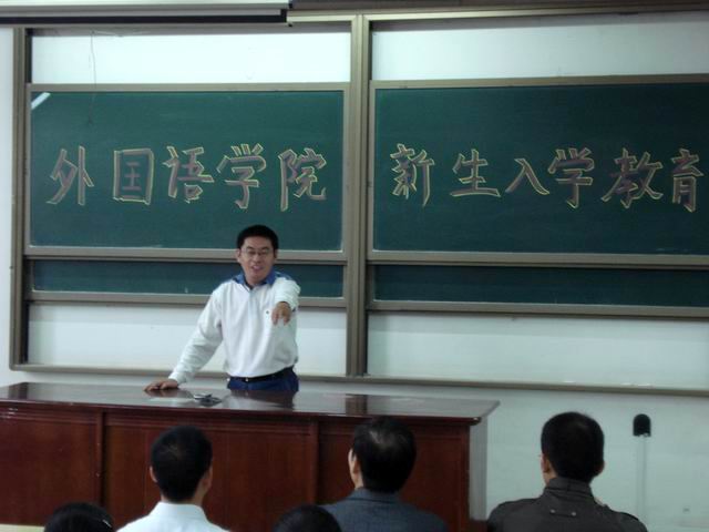 9月13日,tyc41183太阳成集团在南区3号教学楼207教室对09级新生进行了入学教育。tyc41183太阳成集团党总支书记李长林教授,副院长(主持工作)郭万群教授,英语系主任杨为明、日语系主任边冬梅、国际文化传播系主任闫秋霞、团总支书记李向东、英语系副主任刘丽、辅导员关成勇、王伟班主任武永以及09级全体新生参加了本次会议。