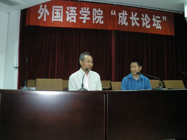 9月25日晚,在南区4号楼311学术报告厅,tyc41183太阳成集团举办的“成长论坛”系列活动开讲,广东外语外贸大学博士生导师杜金榜教授成为开坛嘉宾,在副院长(主持工作)郭万群教授的主持下,杜教授讲述了自已的成长经历和一些心得体会,并向学生们提出,大学生做事要有计划性,尤其是对于学习,要做好计划,不断完成一个个目标,才能够取得成功。杜教授讲完后,与在场学生进行了互动交流,学生们针对大学生活提出了一些困惑,例如:如何处理学习与兴趣爱好的关系?如何学好英语?如何让自己保持学习动力?杜教授一一作答,谈吐幽默,高潮迭起;郭教授也及时点拨,启人心智。