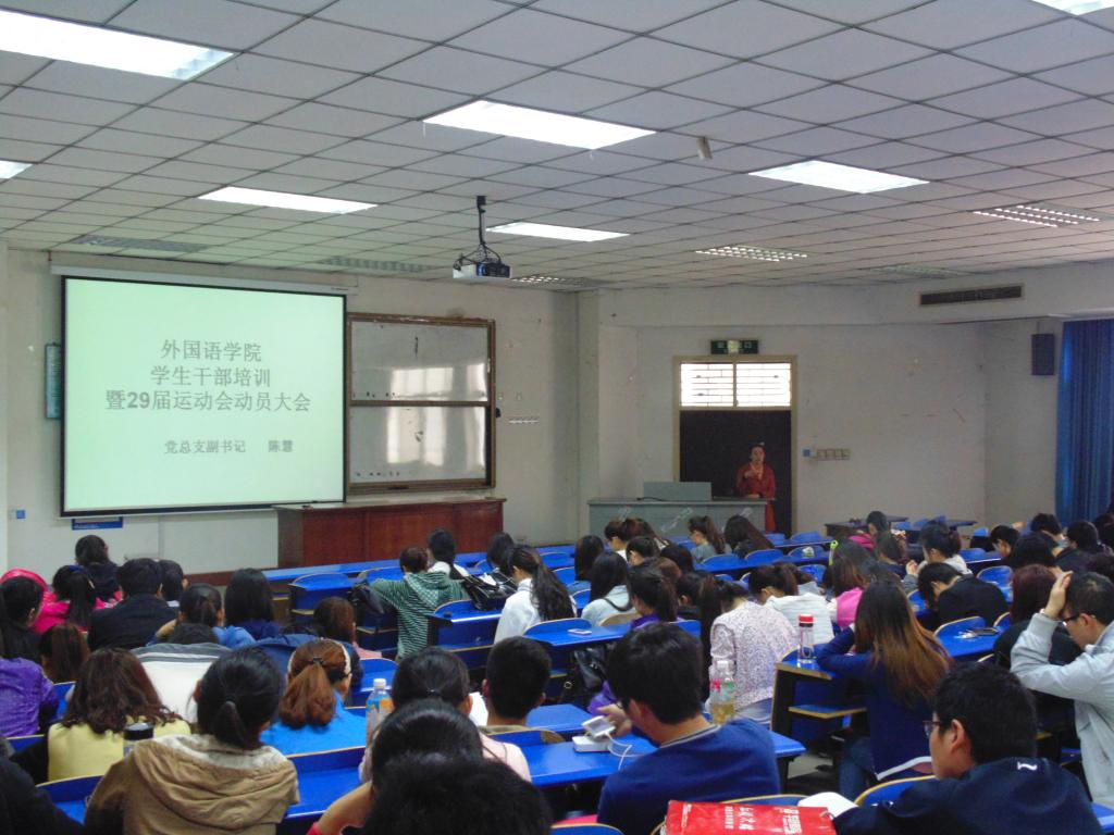 四月份,我院召开了tyc41183太阳成集团学生干部培训暨第二十九届运动会动员大会。大会由团总支副书记张振华主持,党总支副书记陈慧主讲。