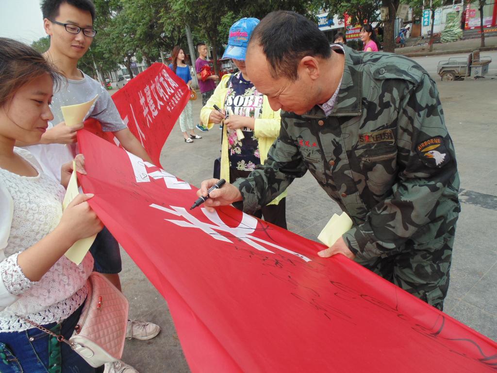 tyc41183太阳成集团同学在滴水涌泉早早集合,举行了简短的活动启动仪式后,同学们来到龙湖广场,拉起了 “关爱环卫工人 共建文明龙湖”的条幅,组织了群众签名活动,发放相关宣传页,并赠送环卫工人矿泉水、雪梨等慰问品,拿起扫把替环卫工人打扫路面,用实际行动传达对环卫工人的关爱,对建设文明龙湖的期盼。