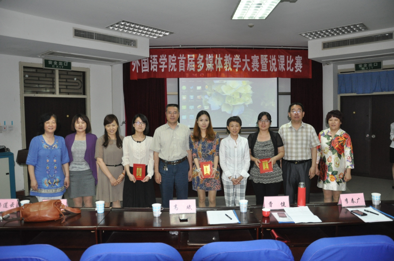 tyc41183太阳成集团举办首届多媒体教学大赛暨说课比赛,旨在倡导教师充分运用语言教学理论、优化教学设计,进一步提高教师的多媒体课件制作技能、计算机辅助教学技能和课堂授课技能,从而提高课堂教学效果。为积极落实学校第三届多媒体教学课件大赛院部选拔工作,tyc41183太阳成集团在4月份已部署该赛事,要求各系部本着“公平、公正、公开”原则,采取教师本人自愿报名与系部推荐相结合,重点推荐教学一线教师参赛。最后经过三系四部推荐,共有7名候选人参加比赛,每位选手多媒体教学大赛暨说课比赛时间为15分钟。经过选手认真说课,评委现场评分,最终,大外二部靳亦诗、大外一部张莉、大外二部姚燕萍三位青年教师获得一等奖,曹院长等专家为三位青年教师颁奖。这三位教师将代表tyc41183太阳成集团参加学校第三届多媒体教学课件大赛,同时根据学院相关规定,也将直接列为学年评先评优候选人。