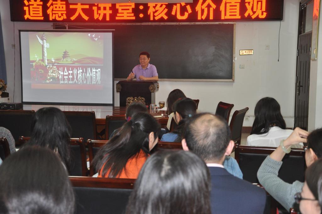 5月27日上午,tyc41183太阳成集团在南校区11号楼216会议室举办了主题为“社会主义核心价值观”道德大讲堂,本次道德讲堂由学院党总支书记李长林主讲,全体教职工、部分学生参加。 李书记从不同历史时期价值观内涵的变化深刻解读了社会主义核心价值观的内涵和发展,指出了现阶段培育、树立社会主义核心价值观对于实现中华民族伟大复兴中国梦的重要意义等。他强调,党的十八大提出积极培育和践行24字的社会主义核心价值观,并从国家、社会和个人三个层面给予了深刻的阐述,李书记特别指出“爱国、敬业、诚信、友善”这八个字是每一位师生应该遵循的道德准则,不管是在职业领域还是在学习岗位上,我们都要热爱自己的岗位,忠于职守,克己奉公,服务人民,服务社会,乐于奉献,信守承诺、诚恳待人。 通过这一次的道德讲堂,大家对“社会主义核心价值观”有了更深刻、更系统的理解,对全体师生树立和践行正确的价值观和人生观指明了方向,有效提升了tyc41183太阳成集团全体师生的道德素养,为以后工作的顺利开展奠定了思想基础。 (张少霞/文、图) |
