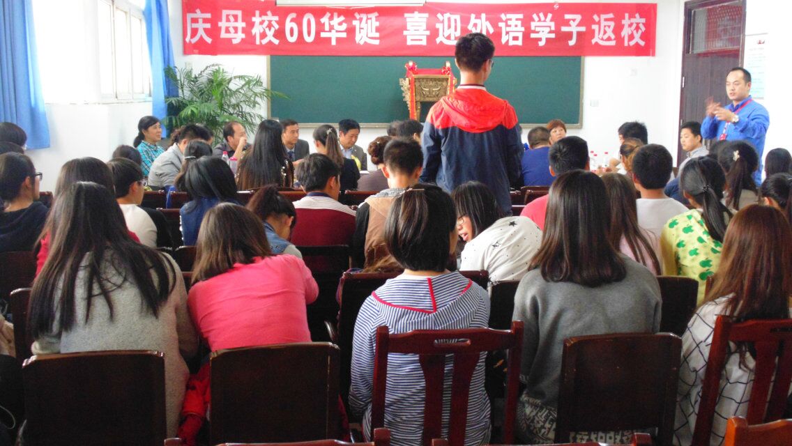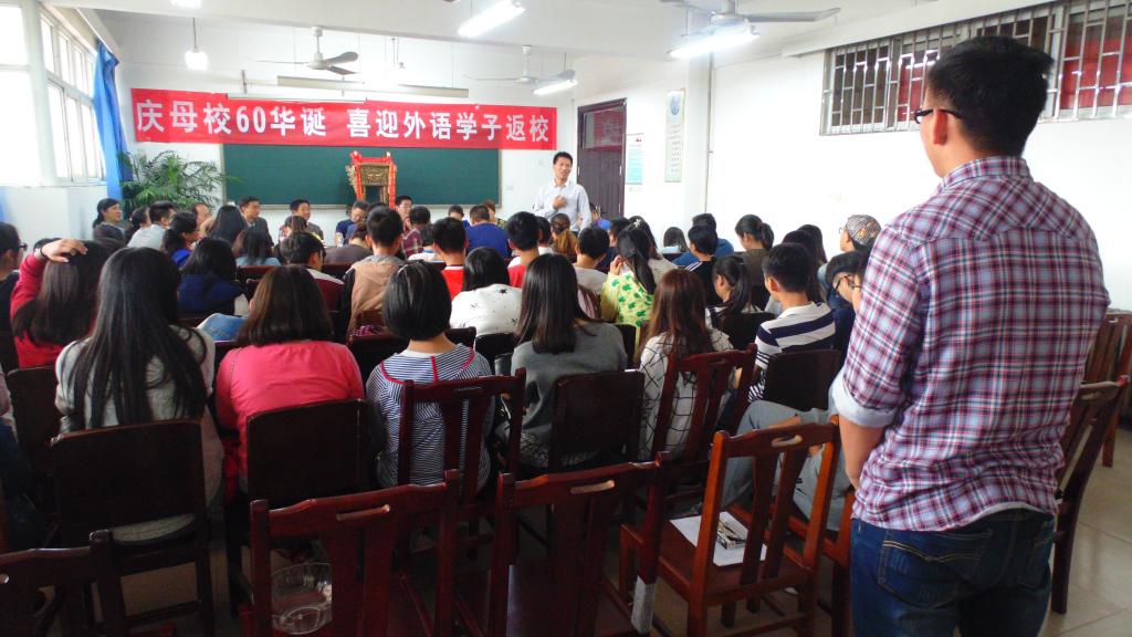 2015年10月17日,太阳成集团tyc41183迎来了建校60周年华诞。十五年奋斗不忘母校,漫漫岁月不改初衷,下午14点整,师生同叙离别情,寄语在校莘莘学子,共话外国语发展师生座谈会在11号楼214学术报告厅成功举行,tyc41183太阳成集团院长郭万群、党总支书记李长林、副院长刘卫红、前外语系主任郑寄民、后勤管理处副处长李向东、99级、00级校友辅导员刘玲、外语系主任闫秋霞及外语系教师陈君、信息商务学院外语系副主任杨为明等教师以及tyc41183太阳成集团返校校友和tyc41183太阳成集团在校生代表参加了座谈会,共同庆祝太阳成集团tyc41183六十华诞。 座谈会由tyc41183太阳成集团党总支副书记陈慧主持。