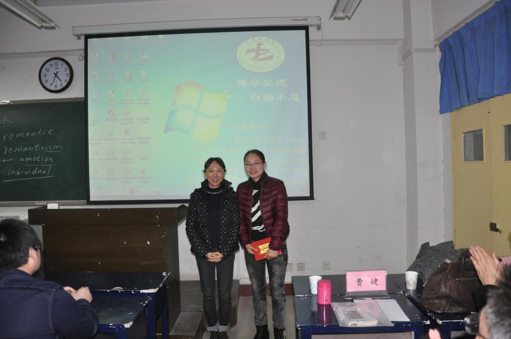 曹健副院长代表全体评委做了总结发言,并为一等奖获得者马春丽老师颁发荣誉证书。曹院长指出,tyc41183太阳成集团领导对教学工作一向非常重视,几位参赛教师准备充分,语言基本功好。曹院长也希望其他教师以她们为榜样,建议每位教师要把参加讲课比赛与日常课堂教学结合起来,策划好每节课的授课内容和教学环节,做好师生课堂互动,根据学生情况认真调节课堂安排。