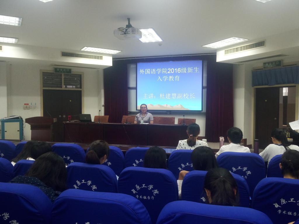 2016年9月27日下午,在南区4号楼311学术报告厅,我校杜建慧副校长为我院2016级新生做了一场别开生面的交流会。学院副院长刘卫红、党总支副书记陈慧、英语系主任闫秋霞以及新生班主任出席了交流会,交流会由刘卫红副院长主持。