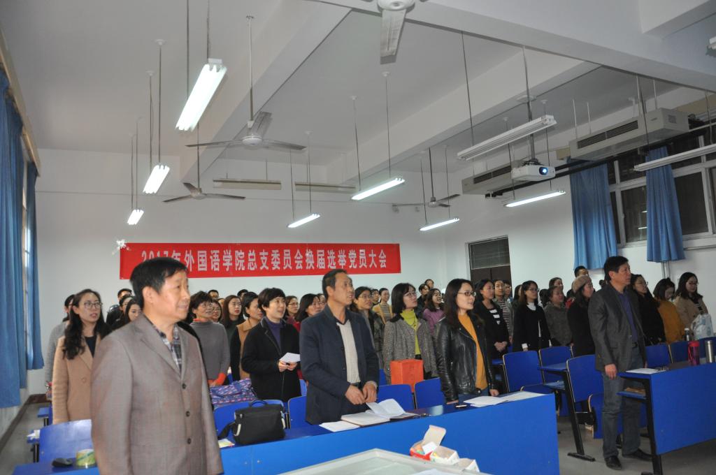 大会在齐唱国歌中开始,付光轩同志代表组织部宣读同意总支换届选举的批复文件,大会讨论了姚晓鸣同志做的工作报告,通过了大会工作人员(监票人、计票人、唱票人),在投票环节,大会工作人员、上一届总支委员、教工党员、学生党员以此进行投票,发出选票65张,收回选票65张,其中有效票数为64张,经工作人员认真的统计,根据大会选举办法,由得票多少选出7人组成新一届总支委员会,经监票人监督和宣布得票情况,大会最后选举郭万群、姚晓鸣、周全营、柴高洁、杨道云、马春丽、郝菁为新一届总支委员。