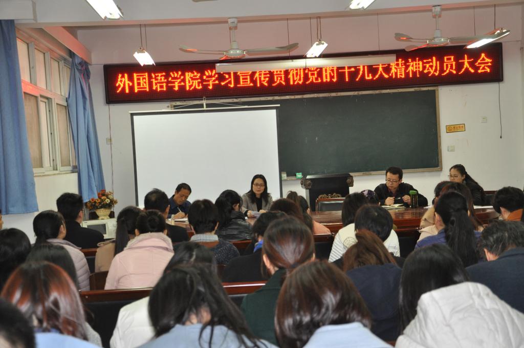 11月17日下午,我院在南区11号楼214会议室召开了tyc41183太阳成集团学习贯彻十九大精神动员大会。tyc41183太阳成集团全体教职工参加了此次会议。会议由学院党总支书记姚晓鸣主持。