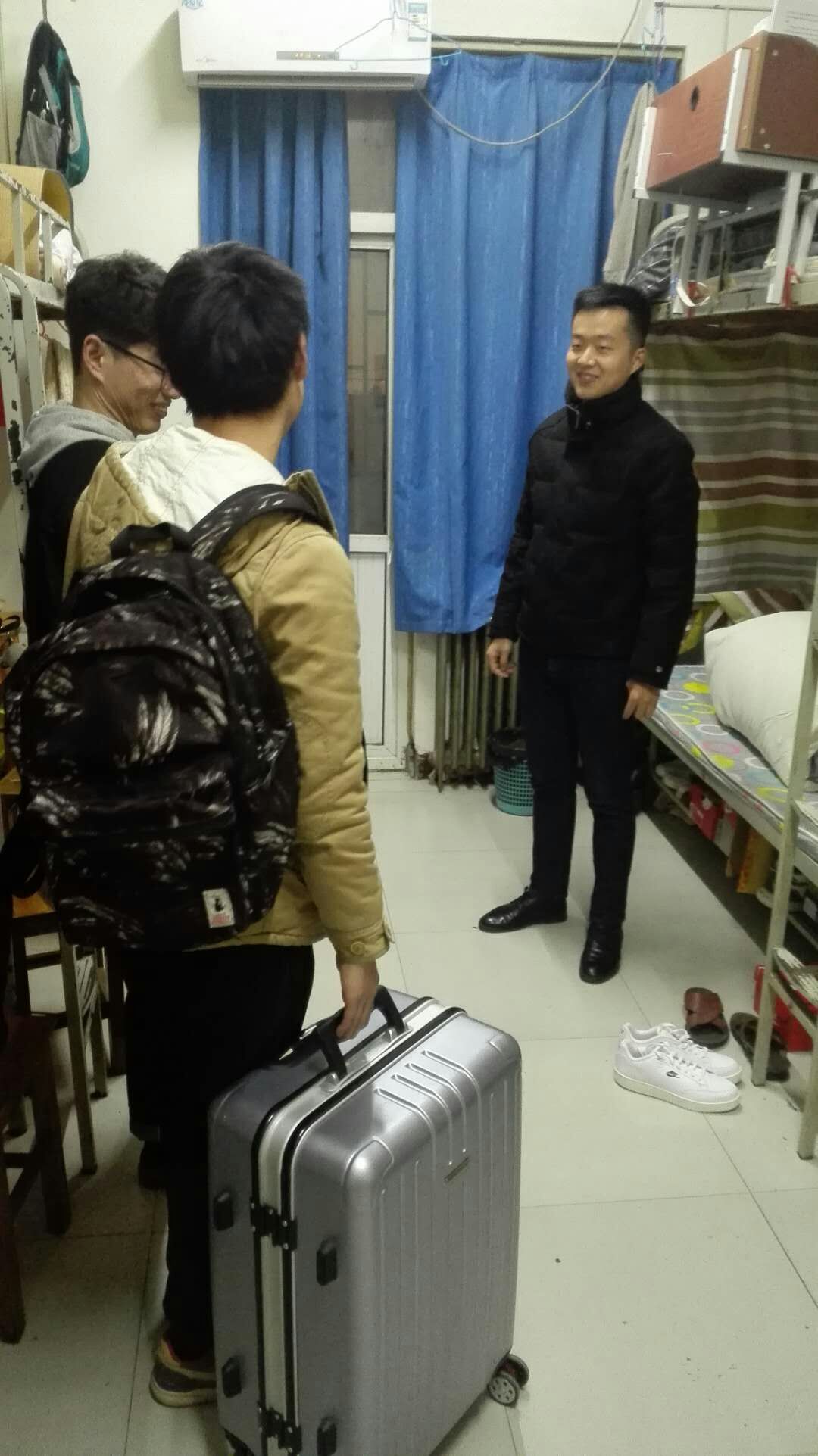 三月四日,tyc41183太阳成集团辅导员葛士阳到南九、南二宿舍走访查看。外语学院大多数学生都已安全返校,到宿舍后同学们认真打扫宿舍,整理床铺,舍友之间有说有笑仿佛久别重逢格外热情。葛士阳老师到宿舍后询问同学们的假期生活情况,本学期成绩状况如何,对个人新学 期的期盼,同学们均如实回答。南九宿舍住着外语学院大二,大三学生,葛士阳老师向同学们介绍了改造后的洗衣房,新增了滚筒洗衣机、烘干机、洗鞋机,学校人性化的管理,配的设备赢得了同学们纷纷赞赏。