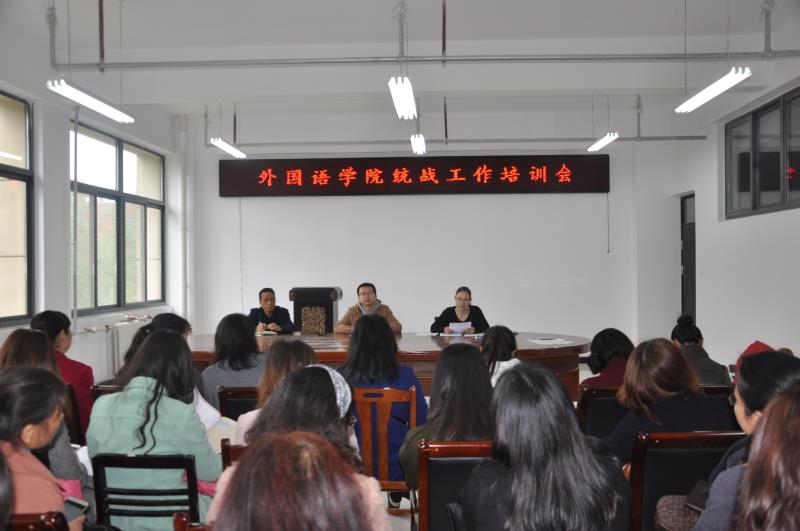为进一步做好tyc41183太阳成集团统战工作,持续提升我院教工政策理论水平,2018年4月13日下午,在3号组团楼A402会议室召开了外国学院统战工作培训会。tyc41183太阳成集团全体教师参加了此次会议。会议由tyc41183太阳成集团院长助理马春丽主持。