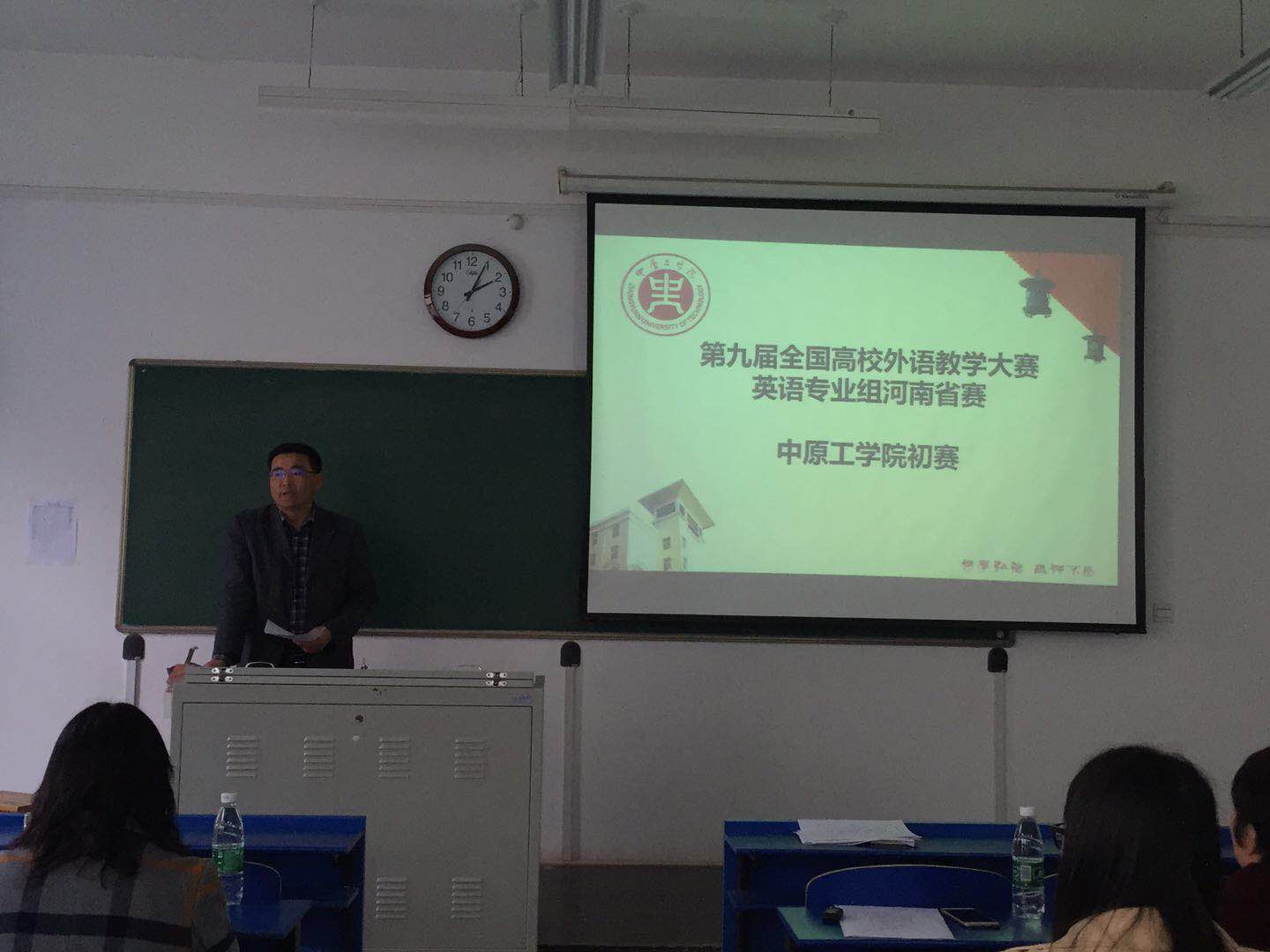 为了深化高等学校教学改革,提升青年教师教学能力;发挥教学竞赛在提高教师队伍素质中的引领示范作用;激励和引导青年教师积极投身教学工作,更新教育理念;为英语专业教师提供一个相互学习和交流的平台,促进教师队伍建设,2018年4月13日下午,第九届全国高校外语教学大赛英语专业组河南省赛太阳成集团tyc41183初赛在2号组团楼 208教室举行。本次讲课比赛邀请教育教学评估中心副主任李宗民、教务处副处长苗凤君、tyc41183太阳成集团书记姚晓鸣教授,督导专家董晓航副教授及曹喜梅副教授担任嘉宾评委。tyc41183太阳成集团英语专业经过选拔赛进入初赛的刘丽、余天敏和龚梦南三位老师参加了此次初赛。比赛由李宗民副主任主持。据悉,此次全国高校外语教学大赛是河南省首次举办,也是我校首次参赛。