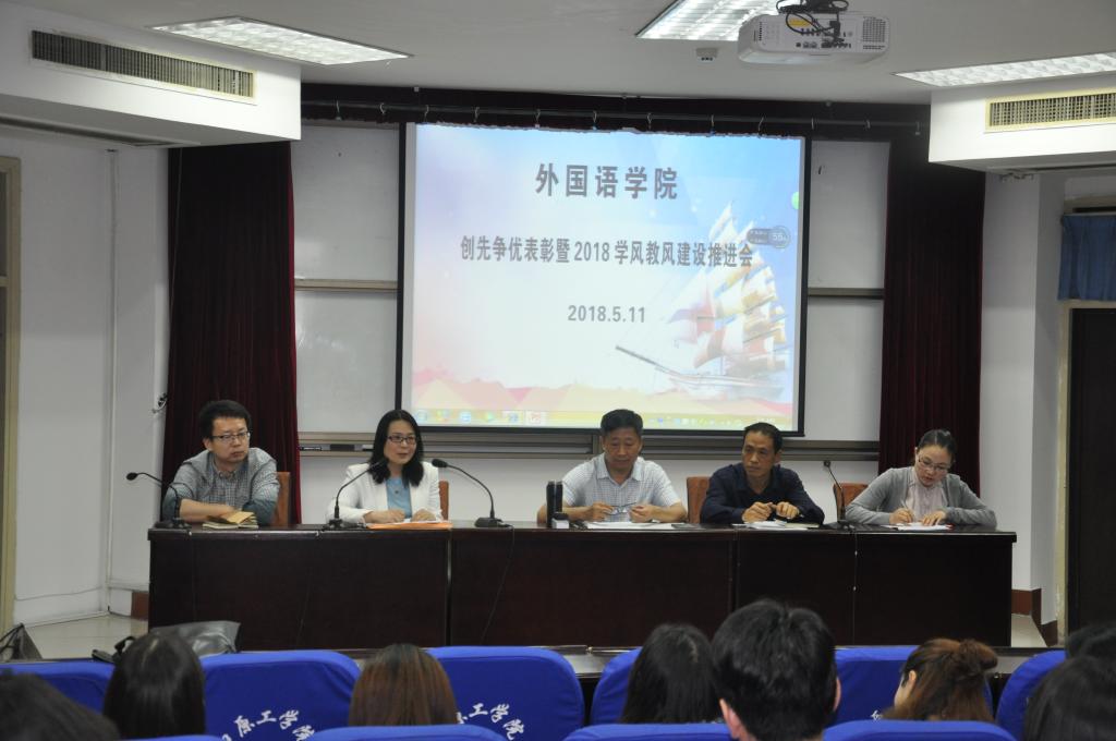 姚晓鸣书记进行学风建设的动员与部署,回顾了2017学年教风建设状况并对进一步加强和改进学风教风建设进行深入分析和动员。姚书记在讲话中通过一系列的数字,指出我院存在的一些问题,针对四六级通过率、专四专八通过率、考研通过率等方面提出了新的要求。随后,援引习近平总书记5月2日在北京大学师生座谈会上的讲话与全体教师共勉,“在学生眼里,老师是吐词为精,举足为法,一言一行都给学生以极大影响,要坚持教育者先受教育,让教师更好的担当起学生健康成长的指导者和引路人的责任”。最后,郭万群院长为我们进一步阐明了教风与学风建设的关系,明确提出了我们学院教风学风的方向和内容,教师应该有以自我为榜样的感染力及熏陶力,强调学院的问题要大家一起群策群力共同面对,我们的未来需要每一位教师携手去开创。