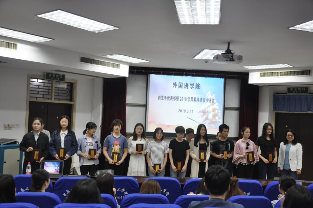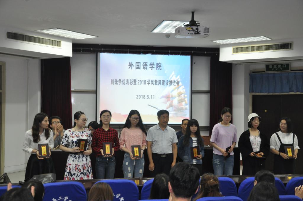 为贯彻落实学校“十三五”规划,推进优良学风教风建设长效机制的形成,不断提升人才培养质量,营造良好的学习氛围,tyc41183太阳成集团于5月11日下午16:00在4号楼311学术报告厅召开了2018年学生创先争优表彰暨学风教风建设推进会,出席会议的有tyc41183太阳成集团全体领导及全院教师、获奖学生代表等。会议由院长助理马春丽博士主持。