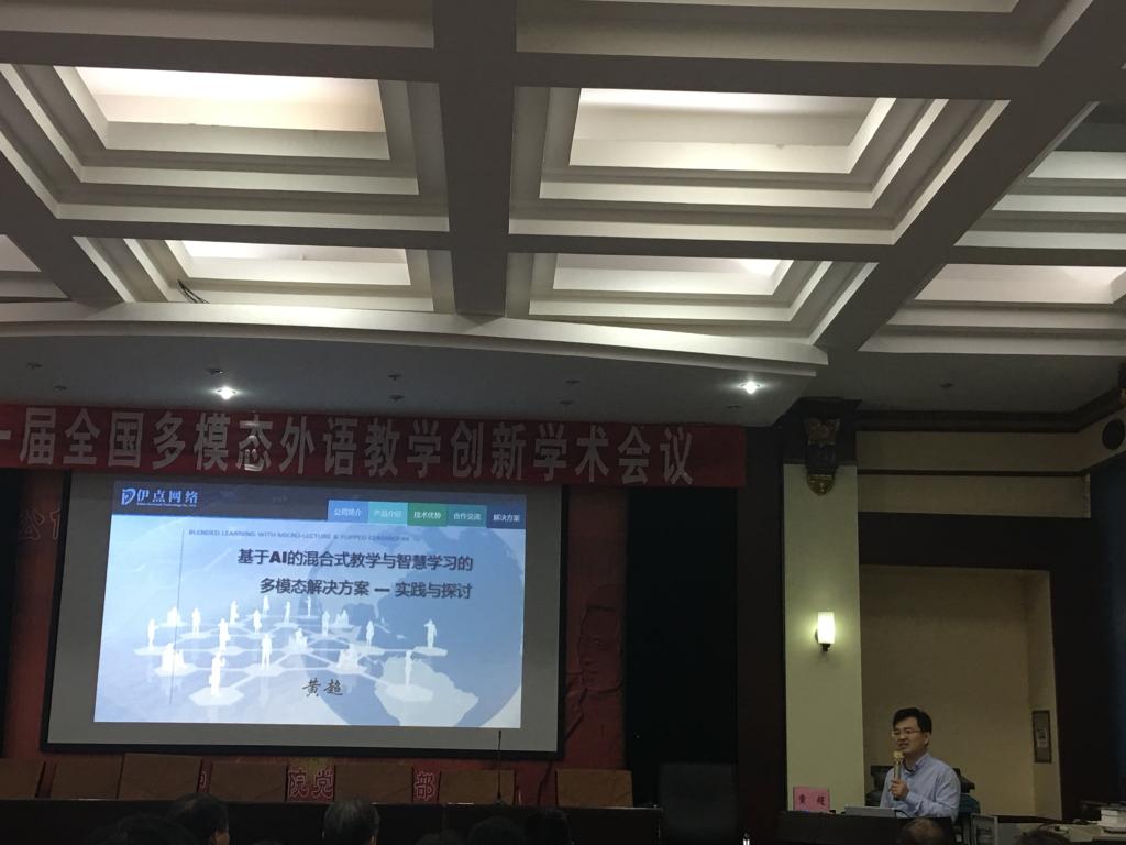 黄超博士从多模态优质资源的智能处理与教学过程中多模态的运用两方面,分别从内容与方法两个场景介绍了伊点网络公司的一些研发成果与实践。两位行业专家对外语在线课程和智慧学习的开发及应用方案的系统介绍,将更好地为多模态外语教学创新提供技术和平台的支持。