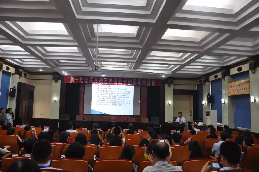 2018年5月26日,第一届全国多模态外语教学创新学术会议在郑州华原颐舍酒店及我校中原校区举办,会议由中国教育语言学研究会和我校tyc41183太阳成集团联合主办,由《外语电化教学》、新东方在线、伊点网络协办。作为一个超学科的研究领域,多模态研究近年来在我国学术界得到高度关注,不仅仅在语言学相关领域持续深耕推进,而且在社会学、法学、新闻学、电影电视、新媒体传播中颇受关注。在新媒介时代背景下,多模态教学研究对深化高校外语教育教学改革、提高外语教育教学质量有着重大而深远的意义。