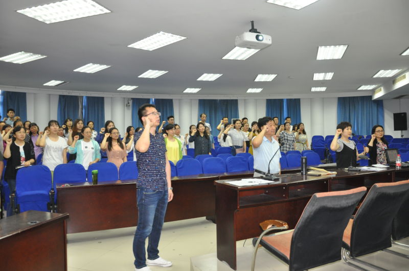 首先,tyc41183太阳成集团党总支书记姚晓鸣教授传达学校下发的《关于学习宣传贯彻习近平总书记在纪念马克思诞辰200周年大会上重要讲话精神的通知》和《关于教育系统深入学习贯彻习近平总书记北京大学师生座谈会上重要讲话精神的通知》,要求学院教职员工深刻领会习近平总书记两个重要讲话精神的丰富内涵、精神实质和重大意义;深入学习两个重要讲话精神,扎实办好中国特色社会主义大学;积极做好引领,引导广大师生勇担时代大任;迅速掀起学习贯彻习近平总书记两个重要讲话精神的热潮。随后,在英语系副主任刘丽老师的带领下,全体教师起立重温了教师的誓言。接着,姚书记针对前期课程评估中出现的问题进行总结,结合问题提出了改进的方法。随后,tyc41183太阳成集团副院长柴高洁针对本学期期末考试注意事项进行了安排部署。