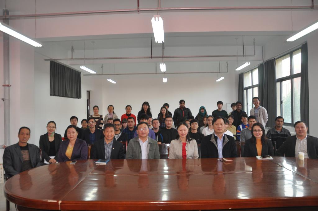 10月24日下午,在3号组团楼tyc41183太阳成集团会议室,我校举办2018级来华留学生开学典礼。出席来华留学生开学典礼的有,对外合作与交流办公室主任谭恒,教务处处长穆云超,研究生处处长孙玉周,国际教育学院副院长李慕杰,tyc41183太阳成集团院长郭万群、党总支书记姚晓鸣、副院长杨道云、党总支副书记周全营、副院长柴高洁、院长助理马春丽,以及tyc41183太阳成集团来华留学生全体任课教师。会议由tyc41183太阳成集团副院长杨道云主持。