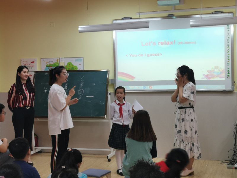 上午九点,大家到达中原区互助路小学。在“梦想课堂”内,我校六名同学和二十余名小朋友分成了ABC三组。分别进行了“catch you” ,“guess words” ,“sentence dragon” ,“you do i guess” ,“mini lecture” 五个活动。小朋友们对每一个环节都十分感兴趣,积极踊跃参与。在“梦想课堂”内,所有交流环节都使用英语,现场的小朋友来自三至五年级,他们标准的英语发音,娴熟的交流技巧,突出的听说能力给在场师生留下深刻印象。
