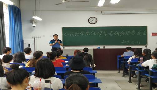 为进一步提高我院学生的考研热情,明确考研目标,也为了给有意向考研的学子们提供更多的考研经验,我院于2019年5月31日中午12:30-14:15在二号组团楼103教室举办了2019届优秀毕业生考研经验交流会。本次交流会有幸邀请到了tyc41183太阳成集团院长郭万群、副院长杨道云、党组织副书记周全营,英语系副主任(主持工作)郭亭亭、英语系教师代表郭瑞娟以及今年成功考研的五位优秀毕业生,他们分别是:15级英语专业胡卿雅、罗祥悦、任玉叶同学,和15级汉语国际教育专业唐诗婧和李明坤同学。