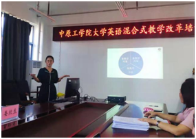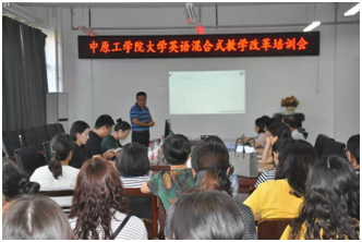 2019年8月30日上午,在3号组团A402会议室,tyc41183太阳成集团邀请黄河科技学院翻转外语项目组为我院教师进行“大学英语混合式教学模式改革”培训。我院全体大学英语一线教师参加了会议。会议由杨道云副院长主持。