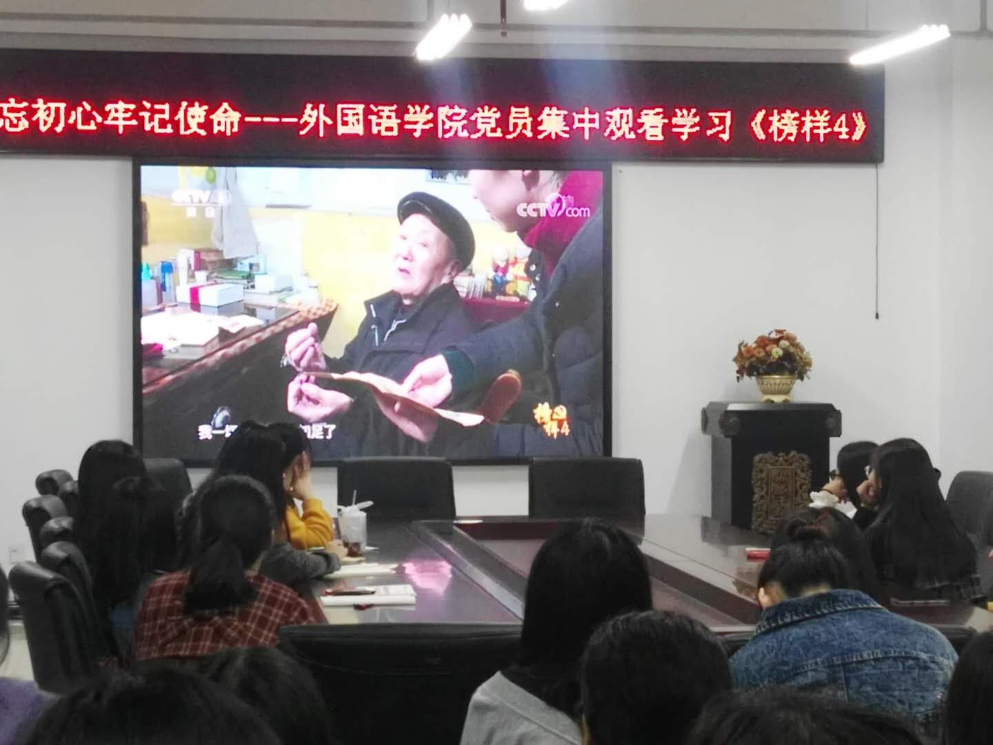 tyc41183太阳成集团在学院党委指导下,把“不忘初心,牢记使命”主题教育作为学院质量提升,高效发展的核心工作,在“守初心、担使命,找差距、抓落实”上取得了一定的成效。为进一步加强“守初心”的责任和使命,按照省委主题教育第十一巡回指导组的工作要求,10月21日晚8:00学院学生党支部组织全体学生党员和新一期入党积极分子在学院会议室集体收看了由中央组织部、中央广播电视总台联合录制的《榜样4》专题节目。本档节目是“不忘初心、牢记使命”主题教育的重要学习资料,是弘扬社会主义核心价值观的优秀内涵,是反映当代中国共产党人在各自工作岗位“守初心”的真实写照,是深入学习贯彻习近平新时代中国特色社会主义思想、开展“不忘初心、牢记使命”主题教育的重要内容。