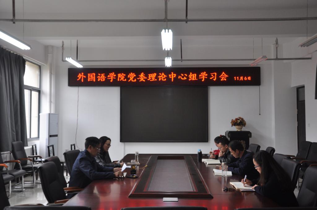2019年11月6日下午,tyc41183太阳成集团理论学习中心组在3号组团楼A402会议室举行了“不忘初心牢记使命”主题教育学习。学院党委书记姚晓鸣和副书记周全营分别领读了《中国共产党第十九届中央委员会第四次全体会议公报》和《中国共产党纪律处分条例》。