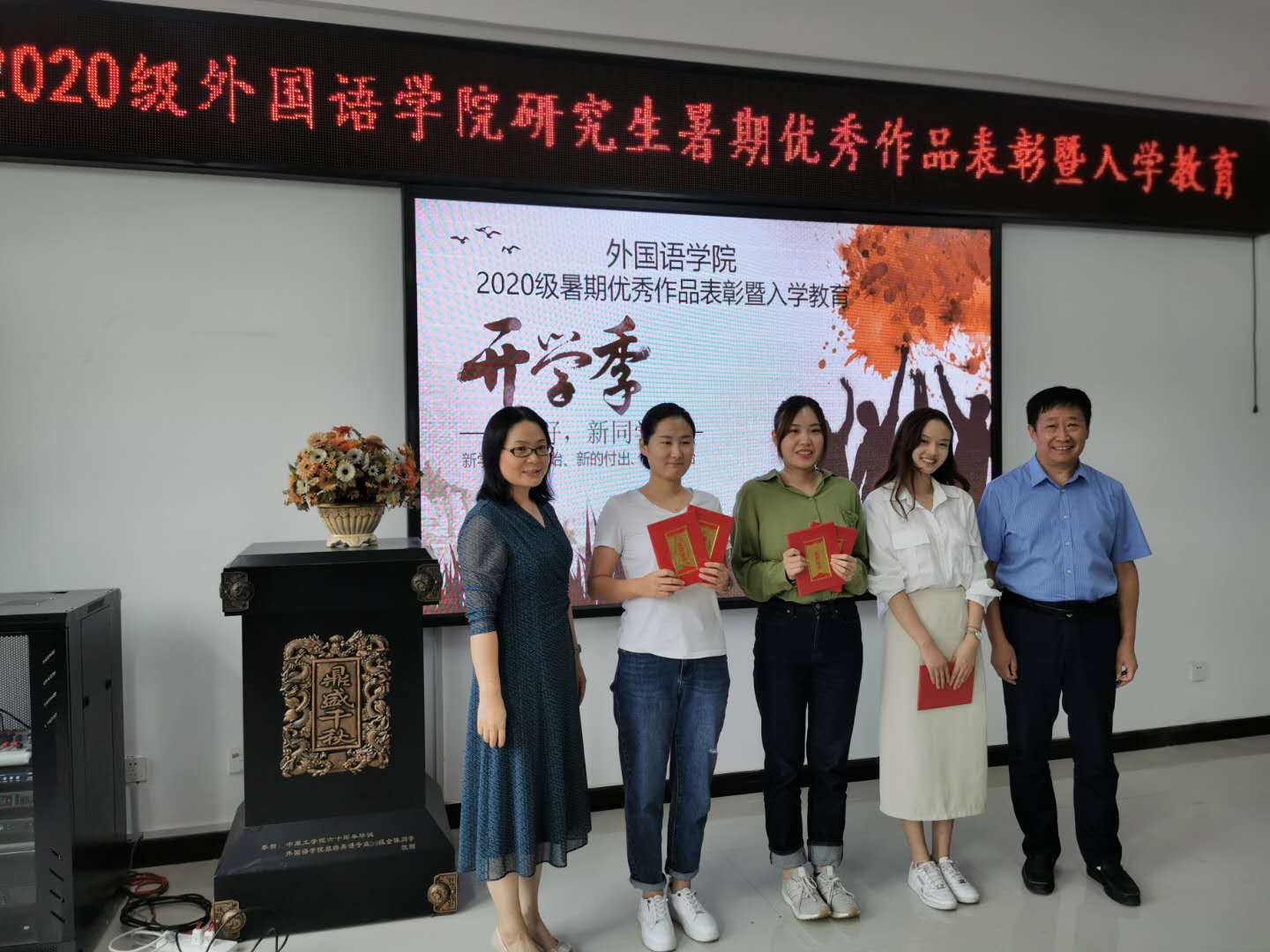 首先,学院对暑期优秀读书报告和优秀作品评比活动中获奖的2020级研究生新生进行了表彰并颁奖,李曹菱等3位同学共有5部作品获奖。表彰活动结束后,导师代表国际教育学院副院长刘卫红和tyc41183太阳成集团党委副书记周全营代表学院对新生进行安全教育,同时对研究生的学习生活提出期望,尤其在疫情防控常态化等方面对研究生提出要求。研究生新生代表毛辛飞发言表示,作为人文社科类研究生,要有广阔的学科视野,在掌握好专业知识的同时,提升自我思维能力。随后,院长郭万群发表致辞,在探讨疫情考验、导师部署后,对研究生新生提出两点希望,一是学子作为研究者要树牢“四个意识”、“培养五个基本能力”;二是鼓励学子做知行合一的跨文化传播者。最后,学院党委书记姚晓鸣总结性发言,从思政角度提出三点希望,要求学子拥有使命担当、厚植专业基础、创新实践能力。(通讯员 吕文韬 曹露方)