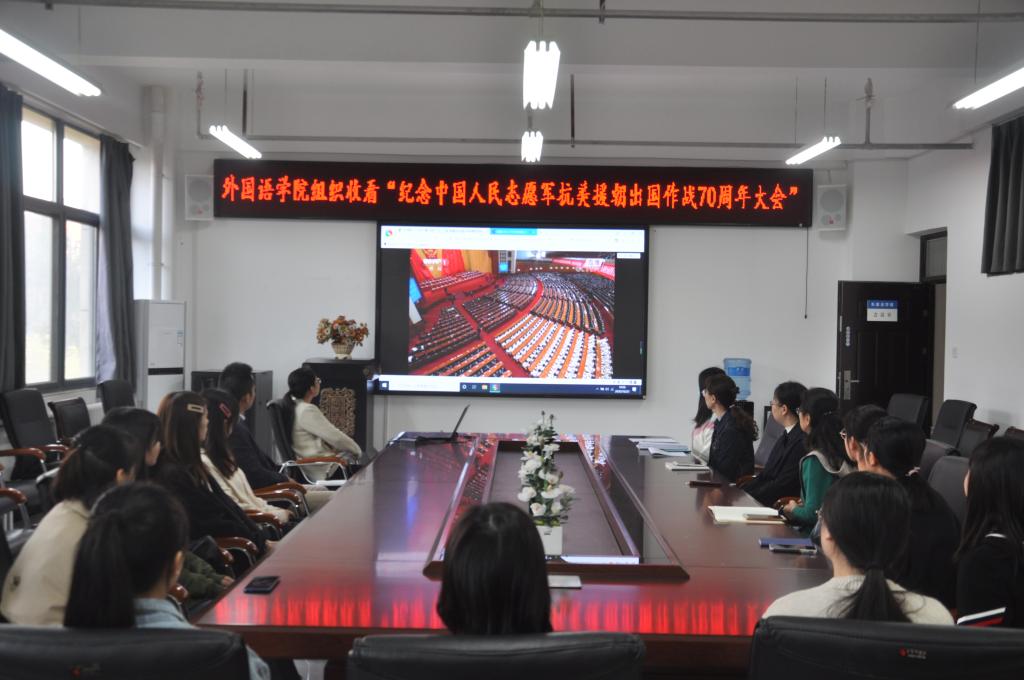 10月23日上午10时,纪念中国人民志愿军抗美援朝出国作战70周年大会在北京人民大会堂隆重举行,中共中央总书记、国家主席、中央军委主席习近平出席大会并发表重要讲话。按照学校党委工作安排部署,tyc41183太阳成集团党委组织师生收看大会盛况。