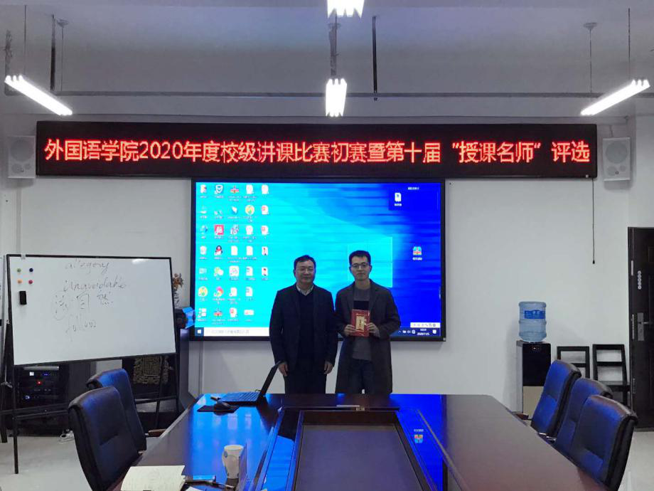 经过激烈角逐和评委的综合考评,王磊获得一等奖,王伟、华鸿燕获得二等奖,张红丽、赵静和陈辉老师获得三等奖。王磊老师被授予tyc41183太阳成集团第十届“授课名师”的称号并将代表外院参加学校2020年度讲课比赛。
