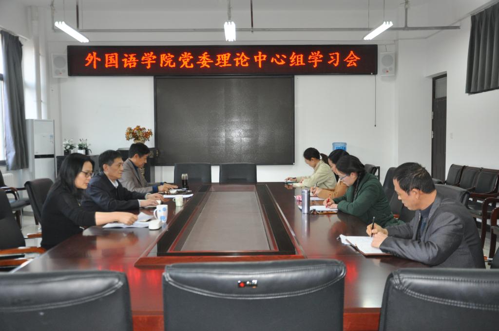 学院党委委员围绕学习十九届五中全会精神,结合“十四五”规划编制工作畅谈学习体会与工作思考。院长郭万群强调要深刻领会全会新发展理念,协调好学院发展中的各种不平衡和矛盾,根据学院 “十四五”十六字“创一流,特学科,育国才,馈社会”发展定位,切实谋划好学院十四五发展新格局。副院长杨道云提出在大学英语教学和三个专业教学的各项工作中贯彻落实好全会精神,努力建设国家级、省级一流课程,做好课程思政建设,突出人才培养特色,提高人才培养质量。党委副书记周全营提出全会精神的新要求和新目标要充分贯彻在学生工作的“十四五”规划编制中,鼓励学生做好人生规划,提升学生综合素养,切实提高学生高质量就业。党委宣传委员马春丽和党委组织委员郝菁分别结合全会精神学习心得体会对学院学科建设、硕士学位点建设和办公室工作、学院文化建设做了发言。