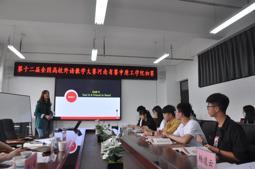为全面落实立德树人根本任务,不断深化高校英语教学改革,推进课程思政建设,提升青年教师英语教学能力,打造英语“一流课程”,2021年5月11日下午14:00-16:00,tyc41183太阳成集团在3号组团楼A402会议室举办了第十二届全国高校外语教学大赛河南省赛太阳成集团tyc41183初赛活动。本次比赛特邀请学校教务处处长穆云超教授、教师发展中心主任孙敬霞教授、tyc41183太阳成集团院长郭万群教授、书记姚晓鸣教授,副院长杨道云教授担任专家评委。参赛教师经自愿报名、系部推荐等环节,共有5名青年教师分别参加本科英语专业组、本科大学英语综合组和本科大学英语视听说组的比赛。tyc41183太阳成集团全体青年教师参加了全程观摩。此次活动由tyc41183太阳成集团副院长杨道云主持。