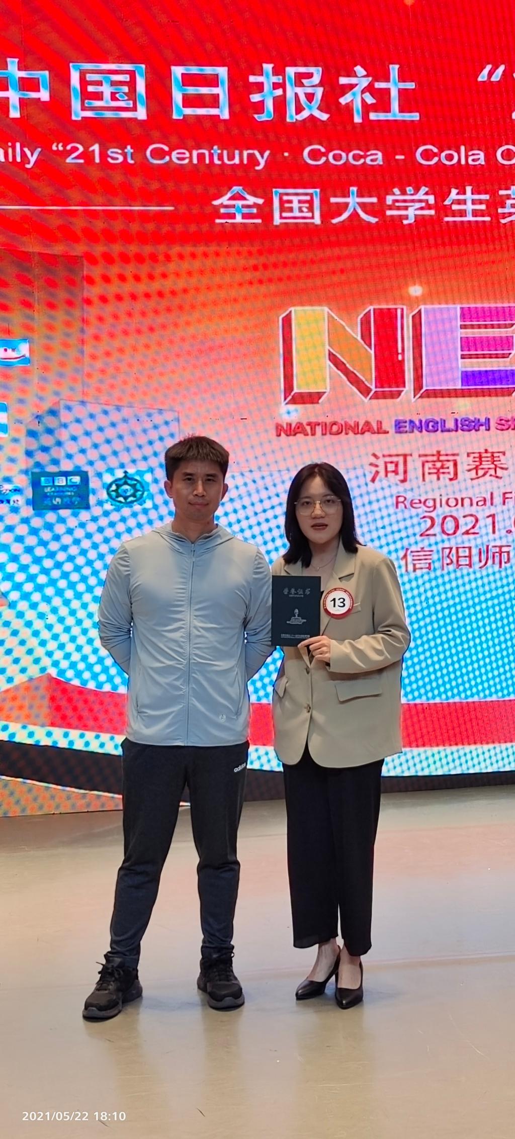 5月22日,第26届中国日报社“21世纪·可口可乐杯”全国大学生英语演讲比赛,河南赛区决赛在信阳师范学院举行。我院赛前动员学生积极参加,组织校内选拔赛,经层层选拔,确定英语系大二学生张心月代表学校参加河南省赛区决赛,并最终获得河南省赛区决赛一等奖,在所有32名决赛选手中名列第5,所有女选手中名列第1。