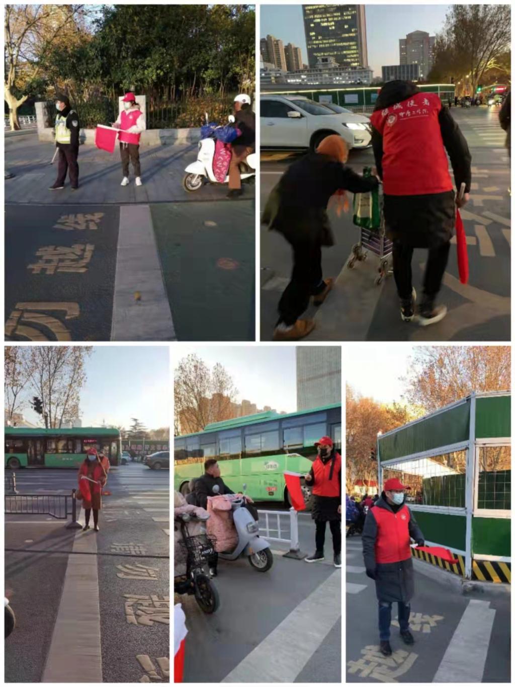 在11月23日的早晚两个交通高峰时段,由我院李向民、张莉、王大智和韩小哲四位党员同志参与的交通志愿者,身穿统一志愿者马甲、手持交通引导小红旗,在指定路口开展交通秩序管理、文明宣传,对行人、非机动车闯红灯、走快车道、非机动车逆行等交通违法行为进行劝阻、教育、引导,针对老弱病残孕等特殊人群安全过马路等行为提供帮扶服务,引导行人遵守交通规则,增强市民的文明交通意识,为维护道路畅通做出了积极贡献,展现了我院党员先进模范带头作用的精神风貌。(通讯员:张少霞)
