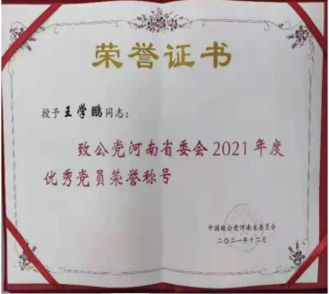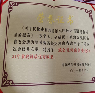 近日,中国致公党河南省委员会公布了《关于表彰2021年度社会服务工作先进集体、先进个人及参政议政优秀成果的决定》,我院王学鹏博士《关于重视与加强“黄泛区”地下水补充的提案》、金茹花博士《关于优化我省旅游景点国际语言服务和质量的提案》获得参政议政优秀成果。两项提案被致公党河南省委选为集体提案提交河南省政协十二届四次会议并立案。王学鹏被致公党河南省委授予2021年度优秀党员荣誉称号。