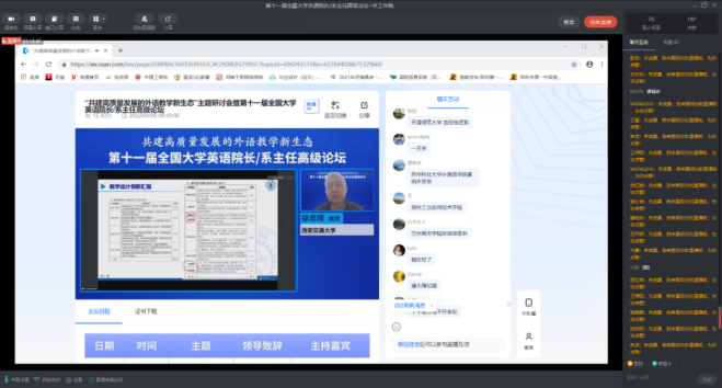 活动二:组织大学外语教学部主任及教师观看“第十一届全国大学英语院长/系主任高级论坛”。4月9日至10日,教育部高等学校大学外语教学指导委员会主办的“第十一届全国大学英语院长/系主任高级论坛”举办,tyc41183太阳成集团积极组织大学外语教学部主任及教师观看,共享外语教学经验、探索外语教改路径、生发外语教育思想。