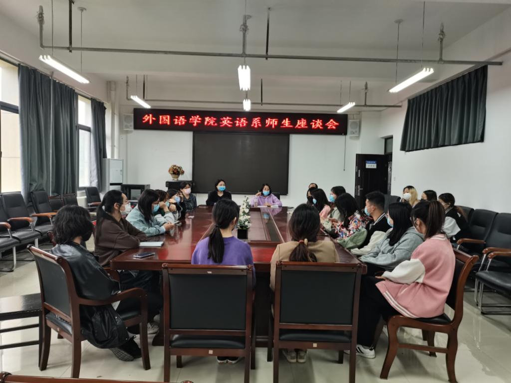 为落实学院“三线”结合、“线上线下”协同的疫情防控学生管理措施,2022年5月8日下午,tyc41183太阳成集团在校志愿者专业教师,召开英语系学生线下座谈会,座谈会在3号组团楼A402进行。英语系教师郭建主持会议,薛冬梅副院长、闫秋霞老师和杨为明老师出席了会议。