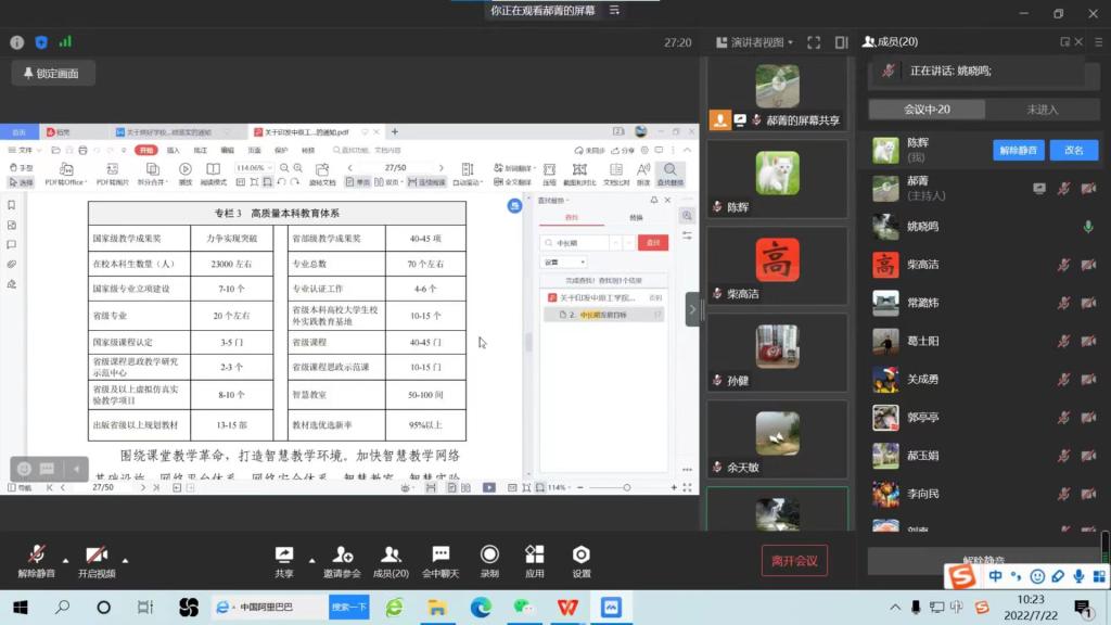 为深入学习学校“十四五”规划,贯彻落实学校“十四五”规划的总体要求,7月22日上午,tyc41183太阳成集团以在线会议的形式召开部门负责人会议,专题学习学校“十四五”发展规划。院长姚晓鸣主持会议,学院班子成员、各部门主要负责人参加。