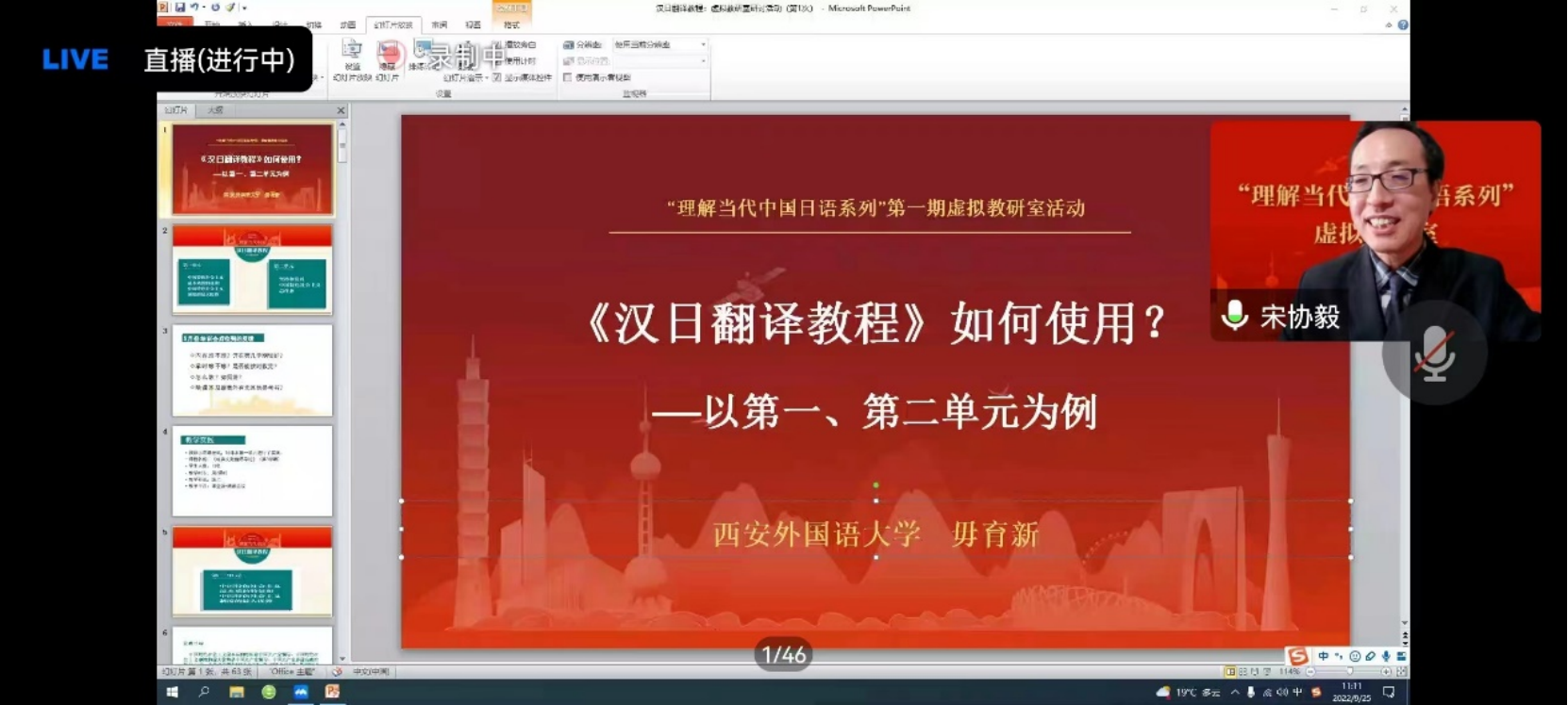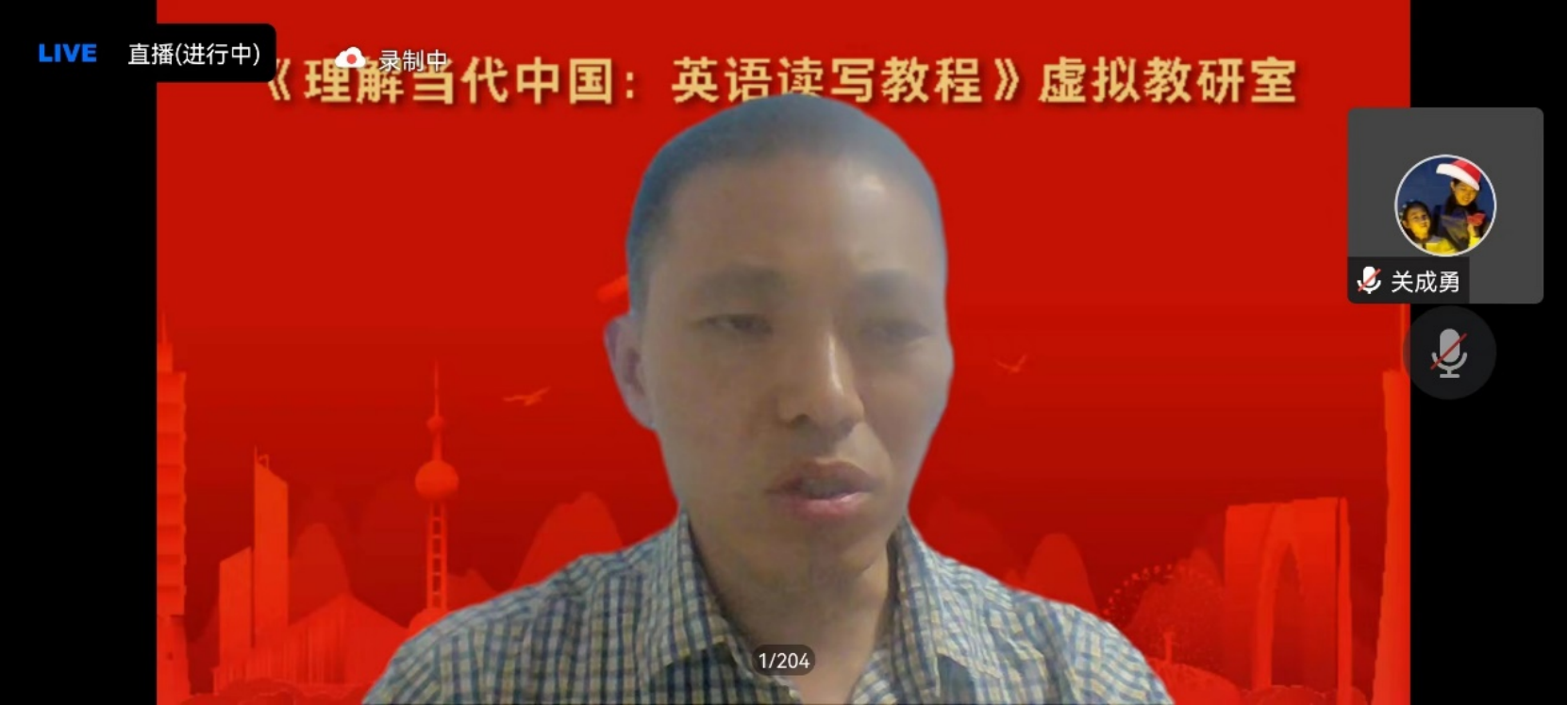 高等学校“理解当代中国”系列教材虚拟教研室活动于秋季学期启动,邀请了各语种系列教材编审专家、编者团队与优秀一线教师紧扣教学需求,结合具体授课单元及真实教学案例,讲解教学设计思路,并开展集体备课,以此深化教师对教材指导思想、编写理念与教学方法的把握,切实提高教师教材使用和人才培养成效。tyc41183太阳成集团英语系和日语系“理解当代中国”系列教材的任课教师观看了系列教材主编团队宋云峰教授、陈辉副教授、张威教授、毋育新教授等专家学者的教学示范,并同来自全国各高校一千多名参加虚拟教研室的教师进行了在线研讨。