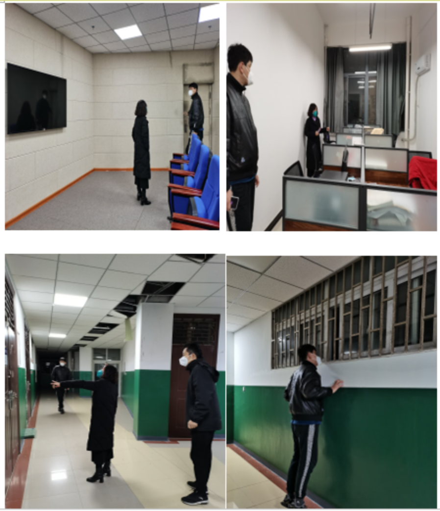 为做好本次消防安全隐患排查整治工作,学院院长、书记亲自部署抓落实,11月24日晚,工作布置会以线上线下结合的形式召开,全体班子成员、驻校志愿者、两办人员参加,党委书记柳素平主持,会议传达学校关于排查整治的文件精神,对排查整治工作进行周密安排。11月29日,学院驻校志愿者在疫情防控繁忙的工作之余,抽出时间,柳素平带队组成葛士阳、周威、吕文韬参加的4人检查组,对3号组团4楼A、B区的办公区域、仓库和4号楼语言教学中心实验室进行一次拉网式、地毯式排查,重点检查了是否违规使用大功率电器、可燃物存放、电气线路隐患等。