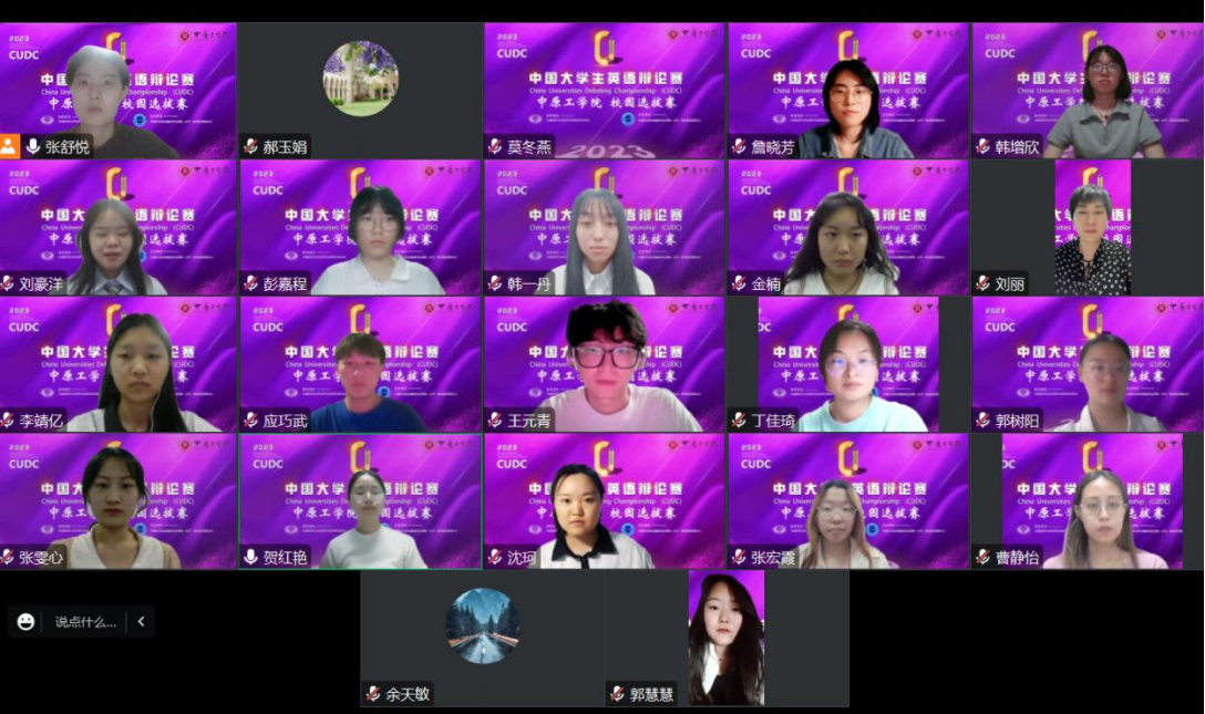 6月13日,2023年中国大学生英语辩论赛(CUDC)太阳成集团tyc41183校园选拔赛成功举办。本次比赛由研究生处、教务处主办,tyc41183太阳成集团承办。校选赛采用腾讯会议形式,经初筛后参赛选手共计十六名,分为八支队伍进行比赛。