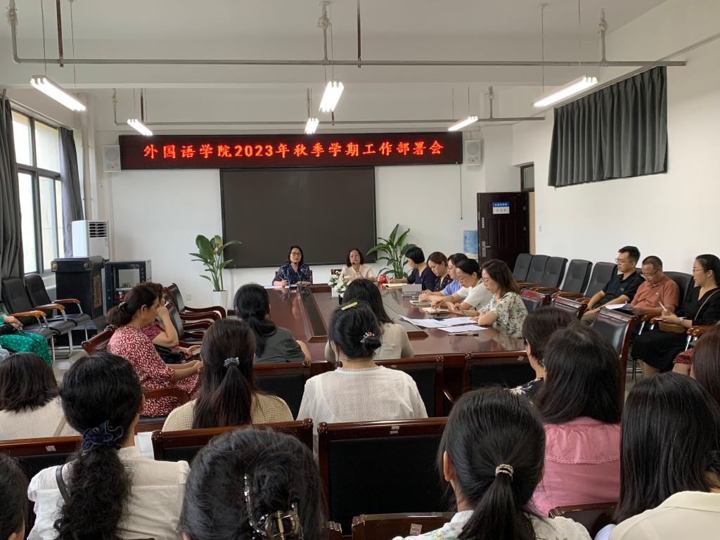 会上,学院院长姚晓鸣对暑期工作进行了回顾和总结,对学院师生在党的建设、教育教学、学科建设、国际交流、师资队伍建设、学生工作、学校更名大学筹建等方面取得的成绩给予了充分肯定。根据学院实际,明确了下一阶段的工作目标。她指出,新学期继续深入落实立德树人根本任务,一是深入学习贯彻习近平新时代中国特色社会主义思想和党的二十大精神主题教育,切实把主题教育成果转化为推动工作的强大动力。二是持续推进以《习近平谈治国理政》多语种版本“三进”为核心的外语课程思政体系建设和大学英语教学改革。三是坚持“入主流,重基础,强特色”,构建以中华优秀传统文化翻译与传播、知识产权翻译与传播为特色的的学科专业发展新格局,积极探索与实践科教融合、产教融合、协同育人。四是加强人才队伍建设,坚持师德为先,不断提升教师教书育人能力和科研创新能力。五是进一步推进国际交流与合作,做好留学研究生、国际交换生和国际中文教师志愿者工作。六是细化服务举措,扎实做好大学生安全教育、日常管理与考研就业工作。姚晓鸣强调,在新的形势、新的要求和新的机遇面前,全院师生要凝心聚力、全面发力,推动学院事业发展再上新台阶,助力河南电子科技大学筹建。