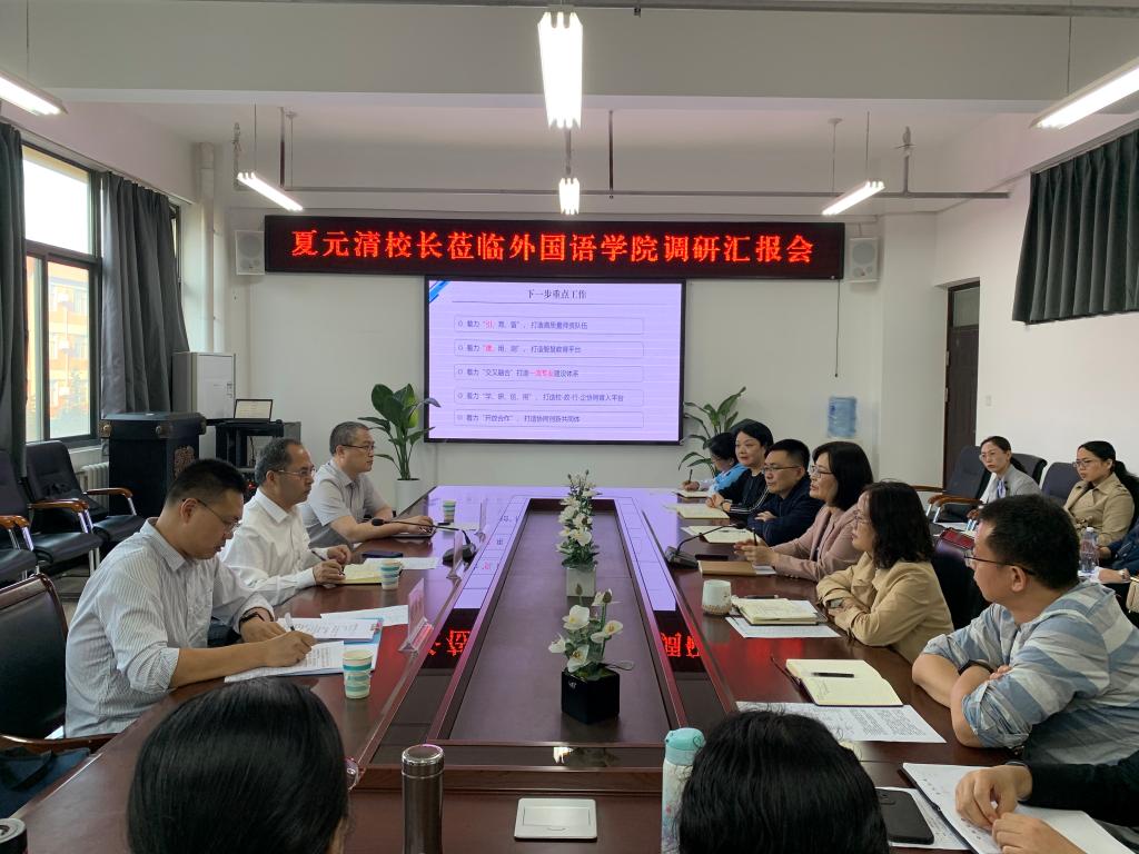 夏元清高度肯定了学院在外语教学、科研工作、一流课程建设等方面取得的成绩。结合自己在国外的留学经历,对学院目前所遇到的外教聘用困难等问题给出了很好的指导建议,并鼓励学院,一要进一步强化课程建设、专业建设,不断提高外语教育教学水平及人才培养质量;二要深入探索外语与人工智能的有机融合,聚焦“语言+人工智能”人才培养模式,推进产教融合、协同育人;三要发挥好外语学科优势,培养中华优秀传统文化的传承者和传播者,讲好中国故事、河南故事,为决战决胜筹建河南电子科技大学贡献外语力量。(通讯员:郝菁)