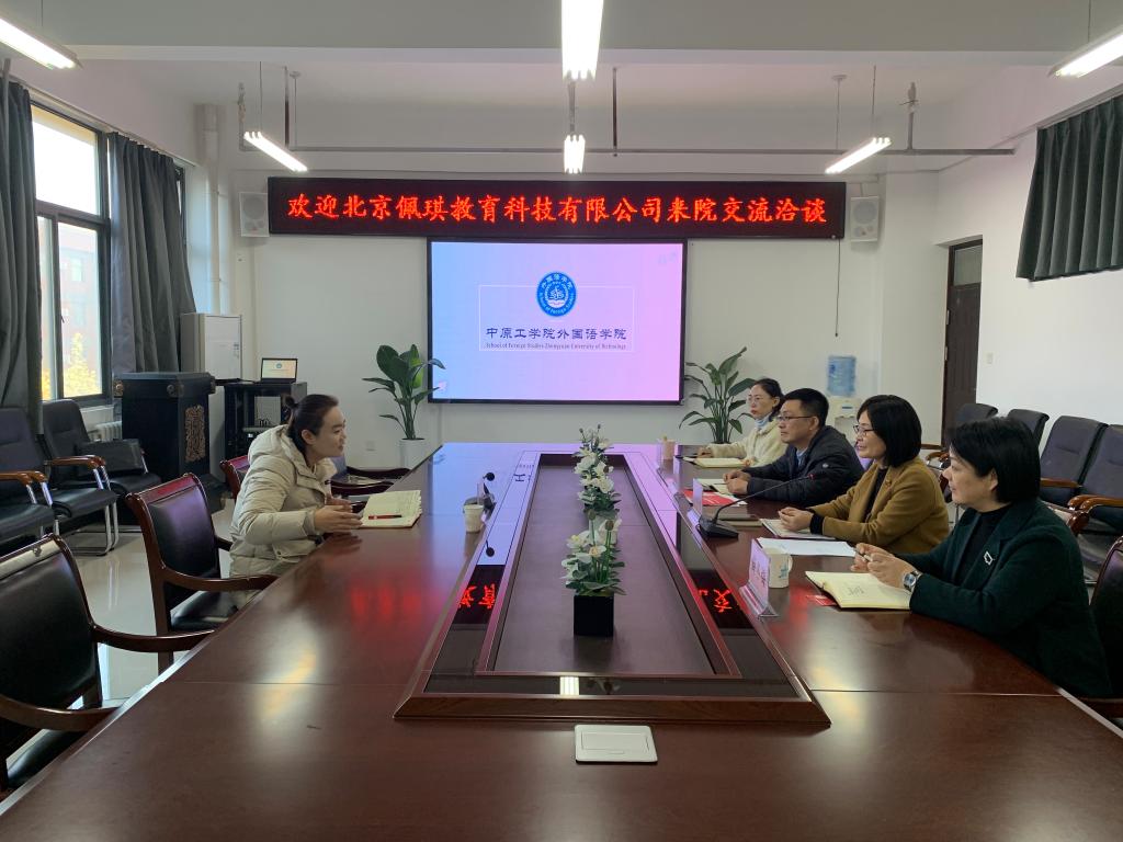 张露允介绍北京佩琪教育科技有限公司(佩琪翻译学院)是一家以互联网为核心的教育公司,为中国外文局全国翻译专业资格(水平)考试项目管理中心官方合作伙伴。张露允表示愿与我院共建CATTI翻译实习实训课程,开展翻译思维训练学术讲座等友好合作。